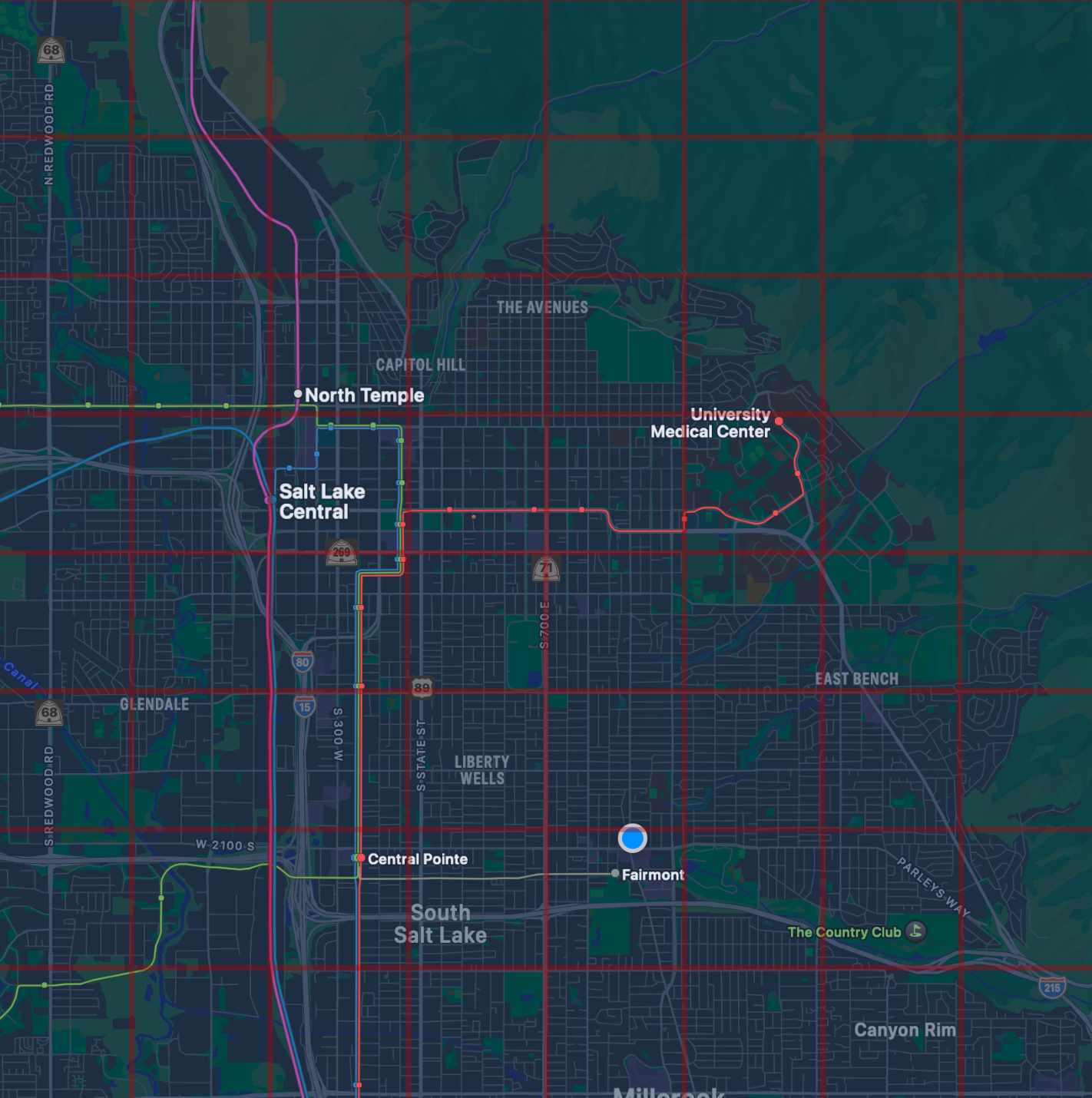 Visualizing this with (yet another) poor overlay — this is the rough scale of 1-square-mile grids overlaid over Salt Lake City: