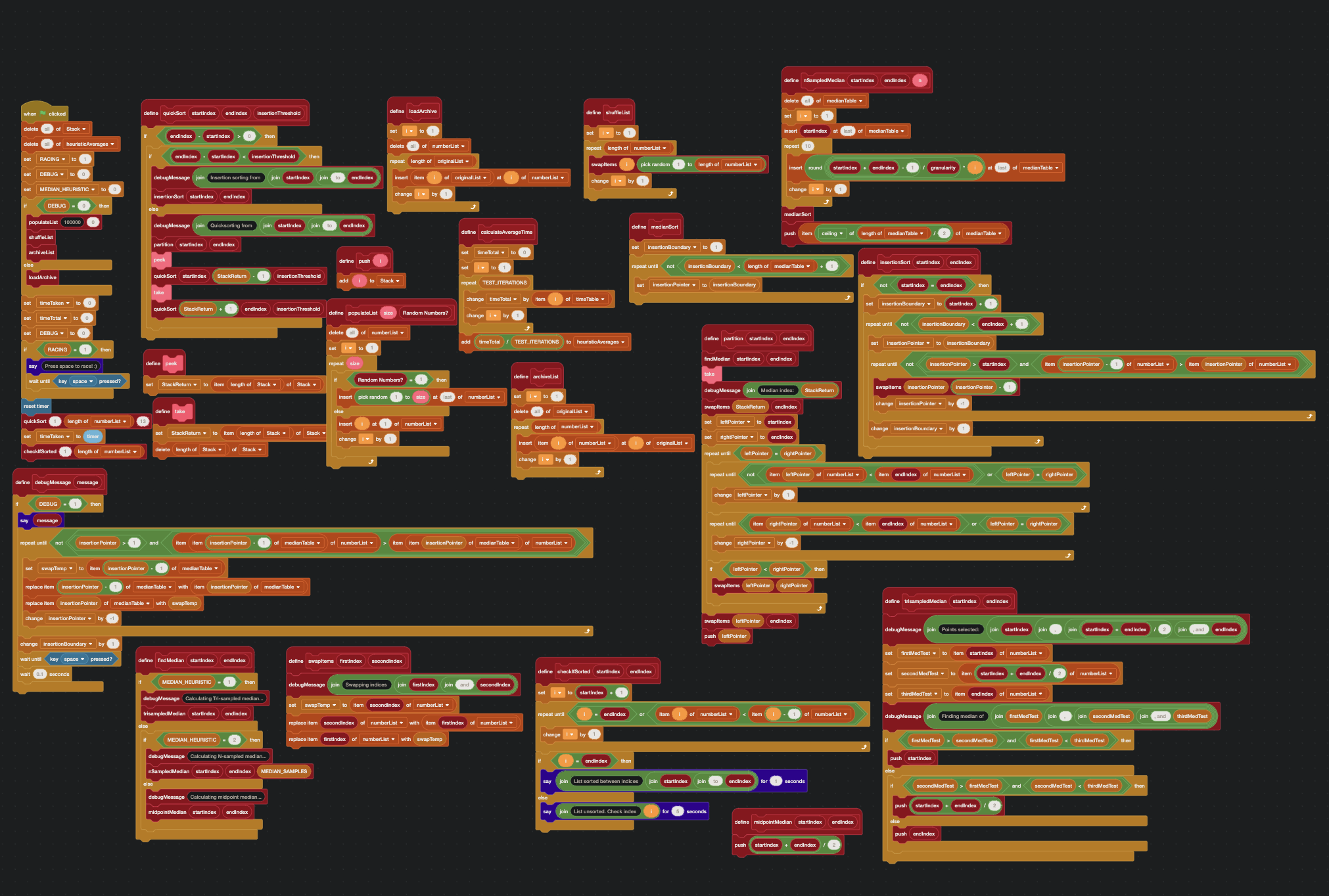 As an addendum to the Scratch Piano Application, I also cooked up an implementation of QuickSort. At my partner’s recent swim meet, I sat next to a couple kids who’ve been learning Scratch and they were showing off some games they’d made.